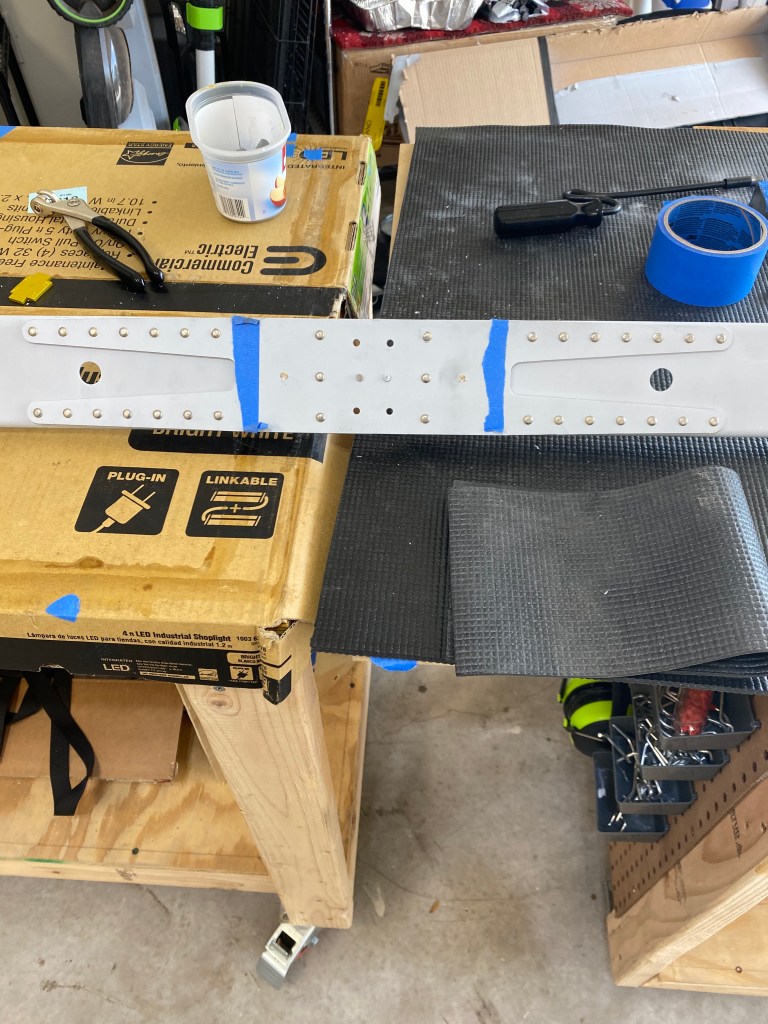 This seemed to be the easiest riveting so my dad and I tackled it first. For more on the first rivet, check out this post. There are eight stiffeners per side, and they range from 18 rivets to 11 rivets. In all, the riveting was fun. You are actually making an airplane part. This took most of the morning because we were stopping every rivet to inspect, and ensure they were airworthy.
