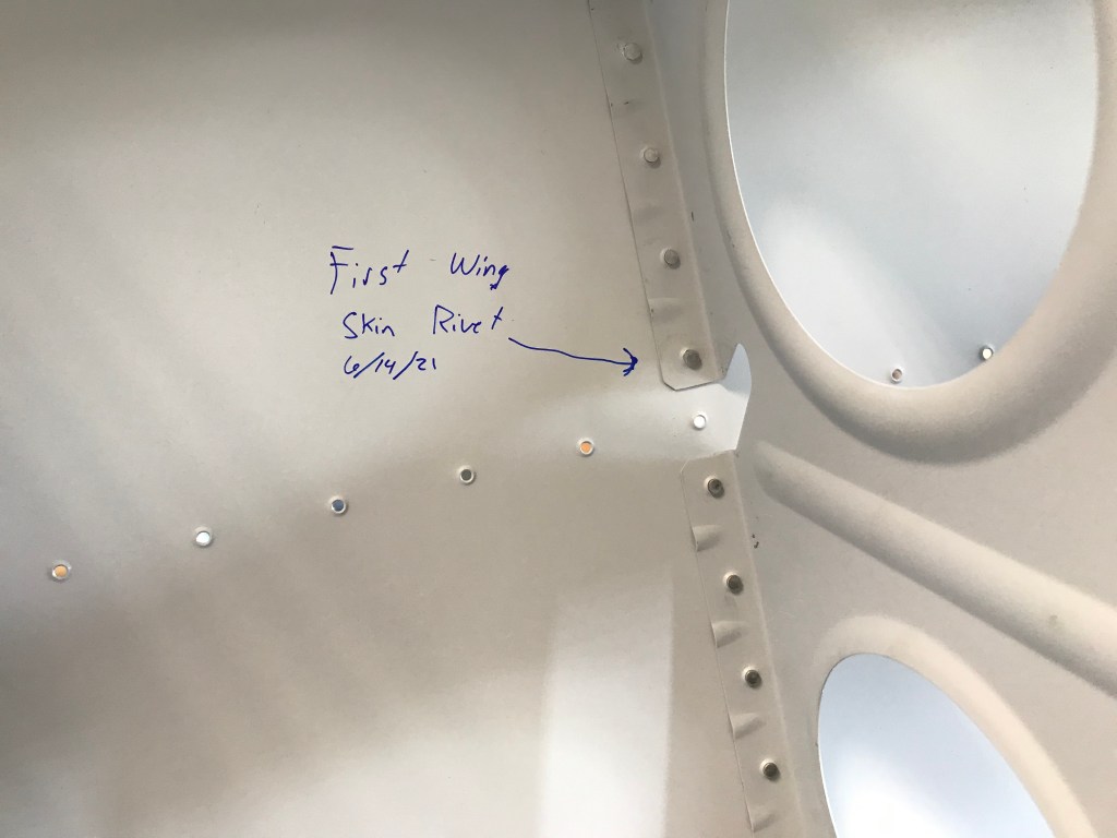 After getting the skins in place and clekoed in place my dad and I began riveting. He was on the inside, and I was on the outside. Once the inboard skin was on, we put on the outboard and continued.